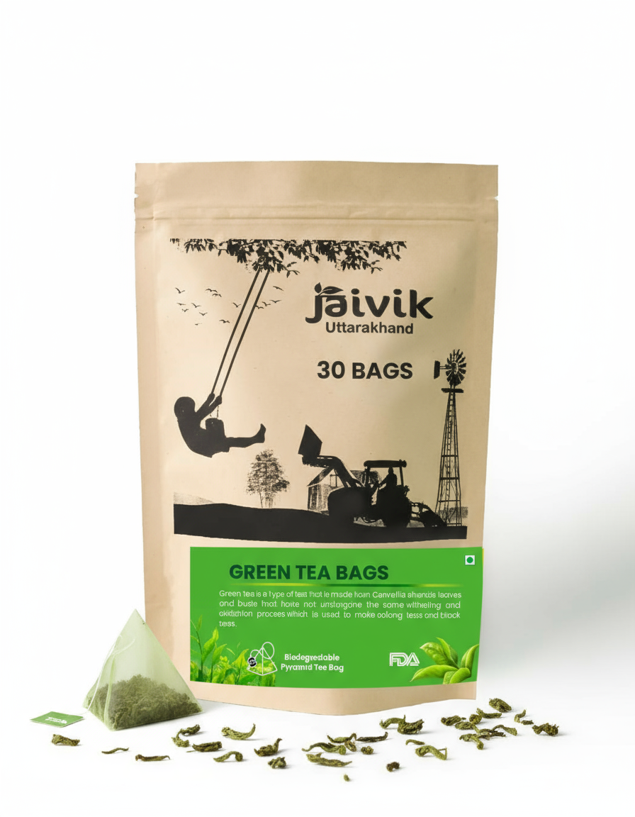 This green tea bags (30 tea bags) pack from Jaivik Uttarakhand is excellent. All 30 tea bags are fresh and give a consistent mild taste. The quantity of 30 tea bags is ideal for regular consumption. Very good quality overall.